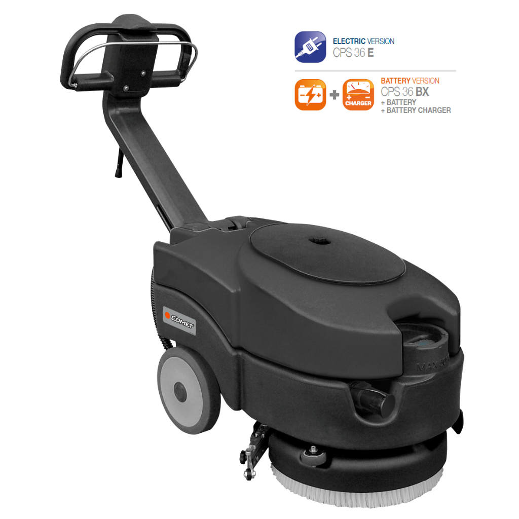 CPS 36 to nowoczesna, kompaktowa szorowarka podłogowa z serii Push, stworzona z myślą o codziennym utrzymaniu czystości w miejscach o ograniczonej przestrzeni.