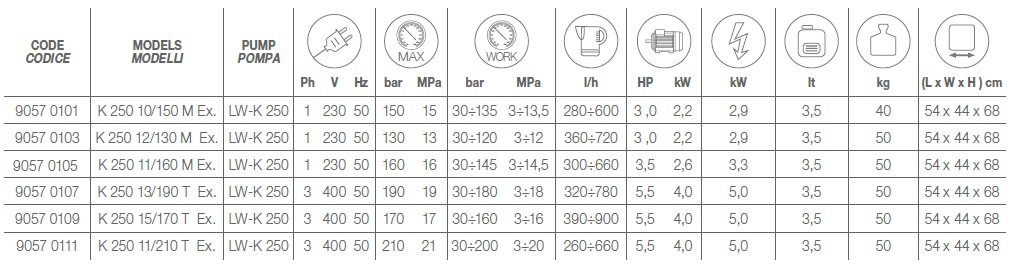 | K 250 11/160 Extra | 160 bar | 660 l/h |