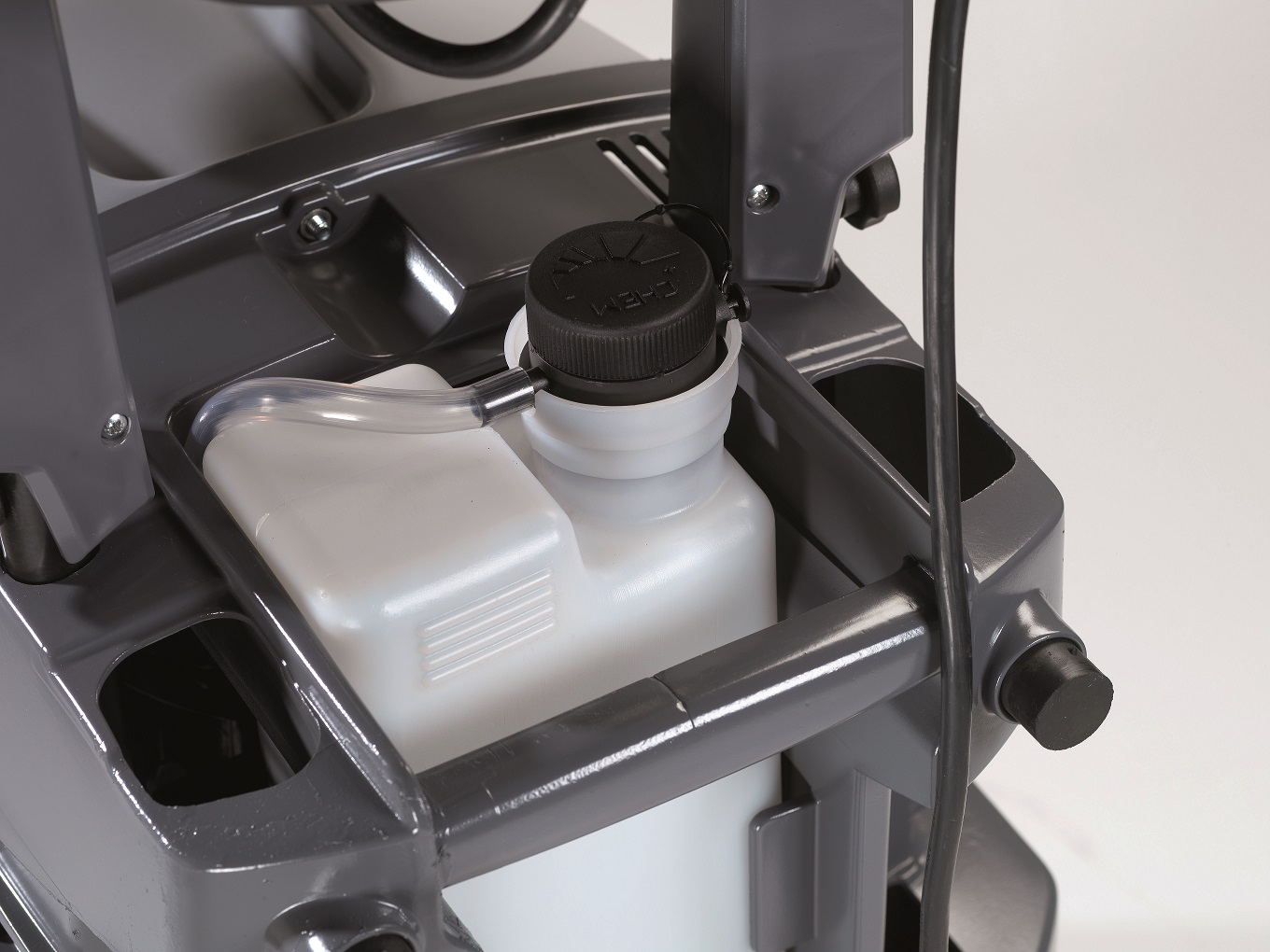 Zdejmowany zbiornik detergentu (3,5 L) – z widocznym poziomem płynu i regulacją przepływu.