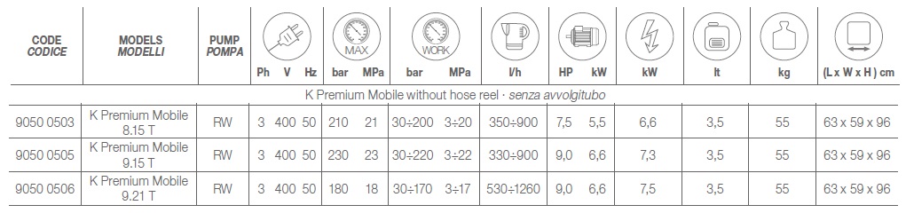 | K Premium 8.15 15/210 | 210 bar | 900 l/h |
