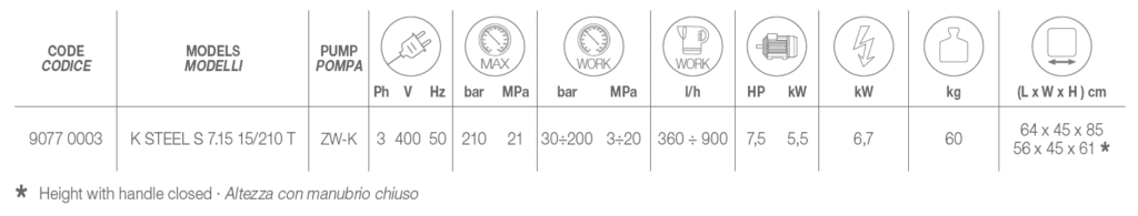 COMET K Steel S 15/210 – profesjonalna myjka ciśnieniowa 210 bar / 15 l/min (5,5 kW, 400 V).