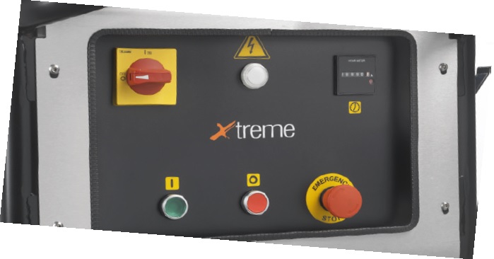 Przycisk zatrzymania awaryjnego + licznik godzin pracy – pełna kontrola eksploatacji.